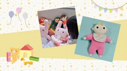 お人形やぬいぐるみ、エプロン、抱っこ紐などを使ってお母さんの真似をするごっこ遊びです。1歳児クラスで特におすすめで、細かい設定のあるごっこ遊びはまだ難しい年齢でも、模倣して遊ぶことができます。子どもが抱っこ紐を使ってぬいぐるみを抱っこし、ミルクを飲ませてあげる姿はとても可愛いですよ。