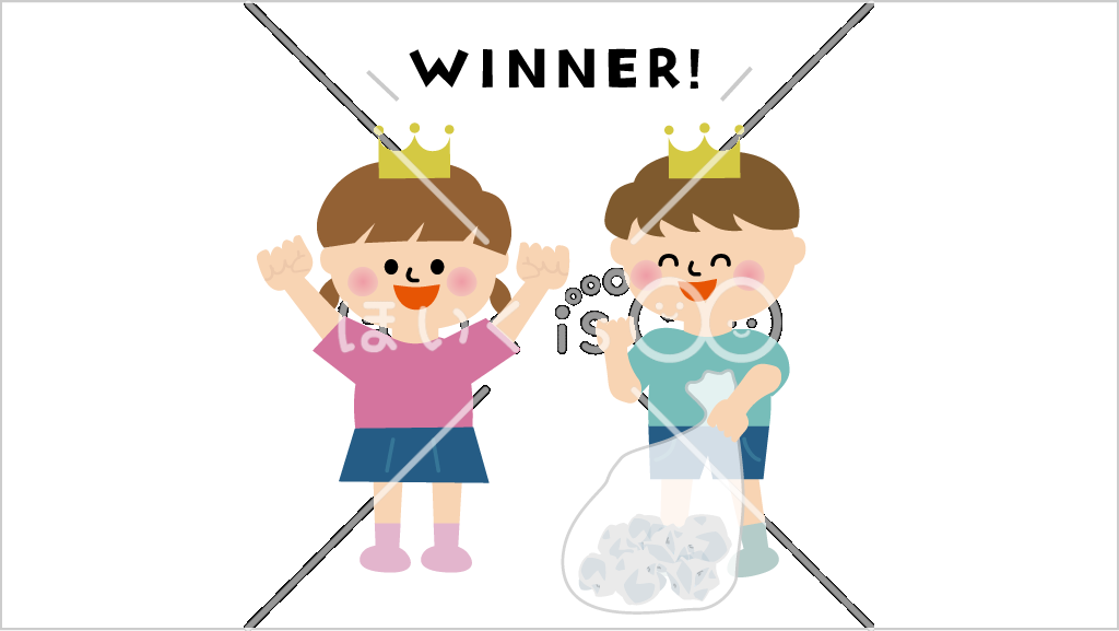 4.いちばん最初にポリ袋がいっぱいになったチームが勝ちです。もしくは、新聞紙がすべて片付いた時に、いちばんたくさん新聞紙が入っていたチームの勝ちです。