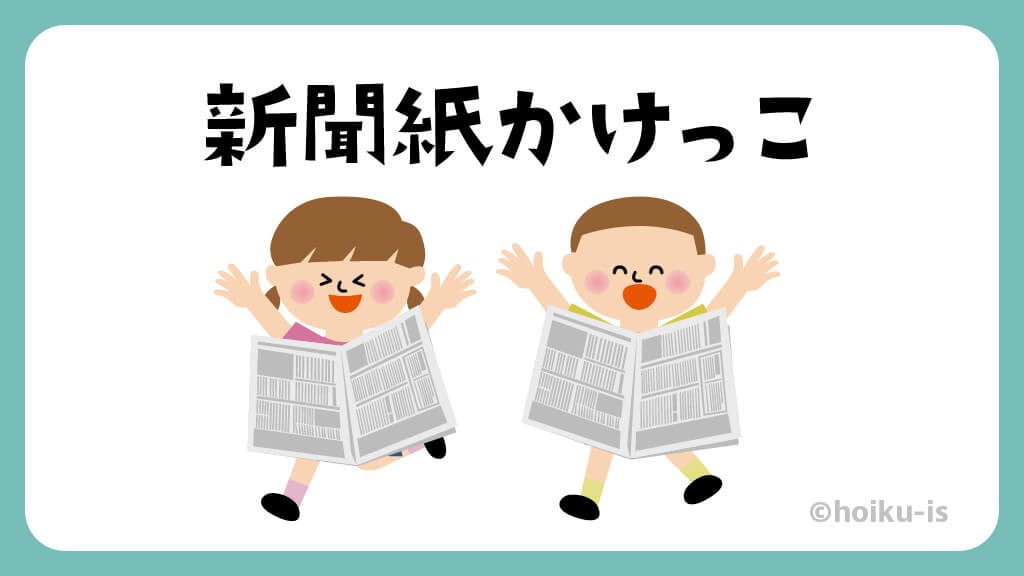 こちらのページで紹介した「新聞紙かけっこ」の遊び方解説イラストを、保育施設での説明にご利用いただけるよう、ダウンロード素材をご用意しました。ほいくisメンバーに登録(無料)すれば、無料でダウンロードすることができます。ポイント