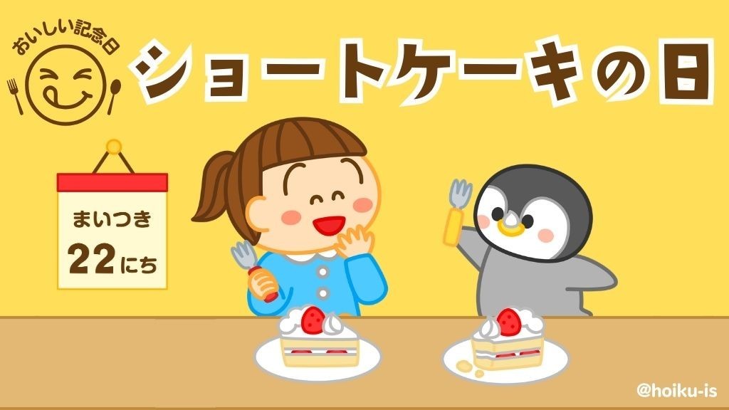 ショートケーキの日は、毎月22日に設定されている記念日です。誕生日やクリスマスによく食べられるショートケーキは、子どもたちにとって特別なお菓子のひとつ。白いクリームに赤いイチゴという配色が印象的なので、子どもたちが色に興味を持つきっかけにもなります。