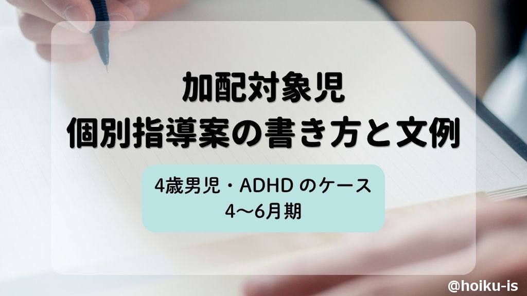 自治体や園によって対応は異なりますが、特別な支援が必要な子どもがクラスにいる場合、担任保育士に加えてもう一人保育士が配置されます。このことを「加配」と言いますが、その加配の対象となる子ども(加配対象児)の発達を計画的にサポートするために、個別指導案を作成します。