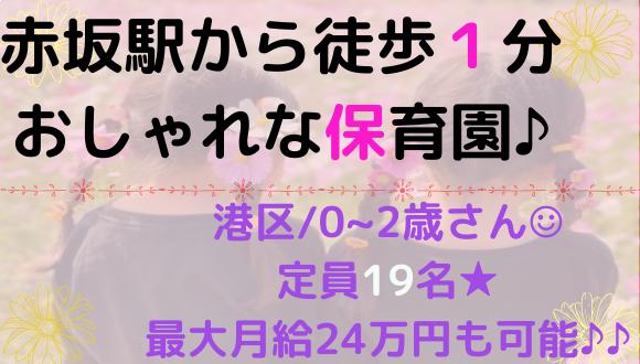 保育士/パート/乳児のみ/定員19名/資格必須/赤坂駅徒歩3分♪/保育補助/時間固定OK!/フルタイム大歓迎☆/小規模保育園/子どもたちとじっくりと関われる暖かな環境です◎