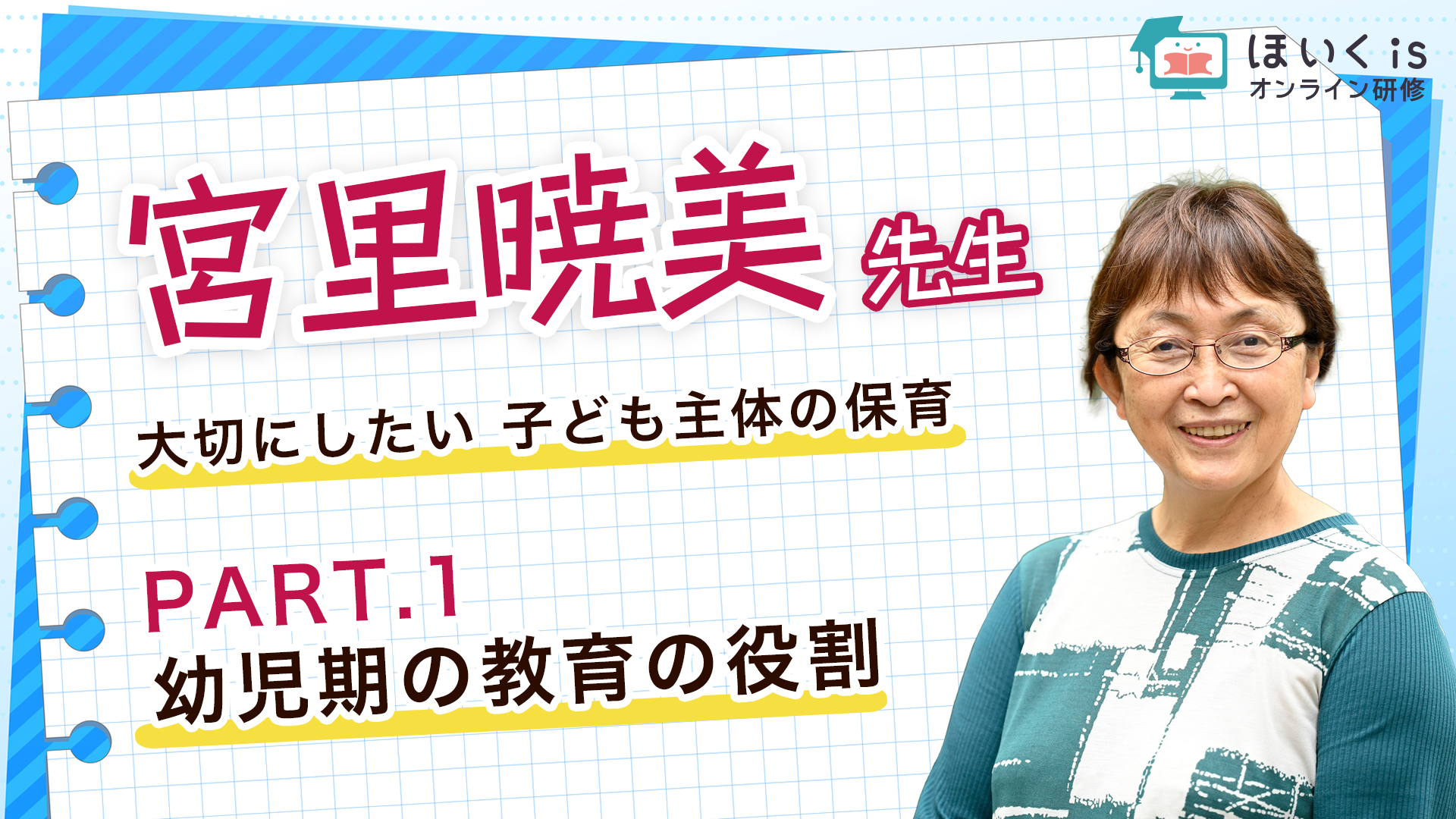 講師は、長年に渡って保育実践研究に携わられる宮里暁美先生。幼稚園教諭やこども園園長を経験し、保育現場で子どもたちと向き合ってこられました。