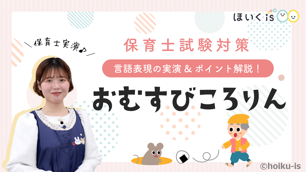 ある日、山に木を切りに出かけたおじいさん。うっかりと落としてしまったお弁当のおむすびがコロコロころがり、入った穴の中から何やら楽しい歌が聞こえてきます…。「おむすびころりん すっとんとん」という、ねずみたちの歌のフレーズでおなじみの、定番の昔話ですよね。現役保育士の素話レパートリーとしてもぜひ覚えておきたい題材です。3分の制限時間に対してお話の要素が少し長いので、上手くまとめるためにも、より時間を意識した練習をしておきましょう。動画の中でも、ポイントを解説していますので、ぜひ取り組んでみてくださいね。